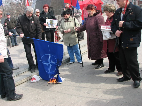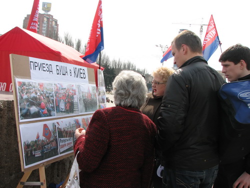 4 апреля в Донецке на площади Ленина Прогрессивная социалистическая партия Украины провела акцию "Распустим НАТО – защитим демократию". Акция приурочена к 60 летию создания организации НАТО – агрессивного военно – политического блока Североатлантического договора. Донецкий обком ПСПУ подготовил выставку фотографий, отражающих хронику борьбы партии против втягивания Украины в НАТО, против проведения учений СИ БРИЗ на территории Украины, борьбу в Донецком областном совете за решение "Донецкая область - территория без НАТО". Кроме фотографий на стенде были представлены документы, изобличающие предательство всех ветвей власти, втягивающей Украину в НАТО вопреки воле народа. Воля народа была закреплена на всеукраинском референдуме 1 декабря 1991 года, где народ Украины проголосовал за Декларацию о государственном суверенитете Украины (а значит, за внеблоковый статус и обновленный Союз с Россией и Беларусью). Выставка вызвала искренний интерес у дончан, особенно у молодежи.