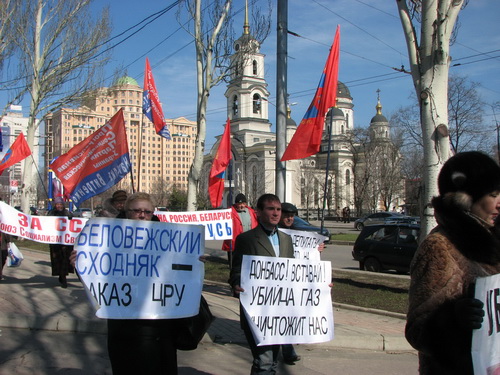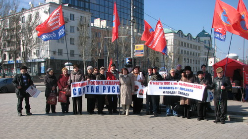 На площади Ленина состоялся митинг. Все выступающие говорили о том, что все 22 года власть Украины, нарушала волю народа, высказанную на референдумах и закрепленную Декларацией о государственном суверенитете. 17 марта 1991 года 80,2 % украинских граждан выбрали Союз. Союз не создали, а за 22 года власть распродала, разбазарила всю социалистическую собственность и превратила народ Украины в нищих, обездоленных и бесправных, заставила бомжевать на задворках Европы и других стран.