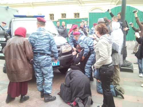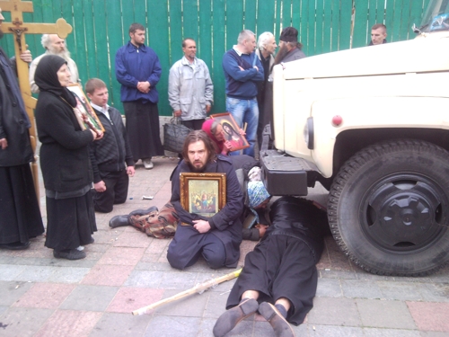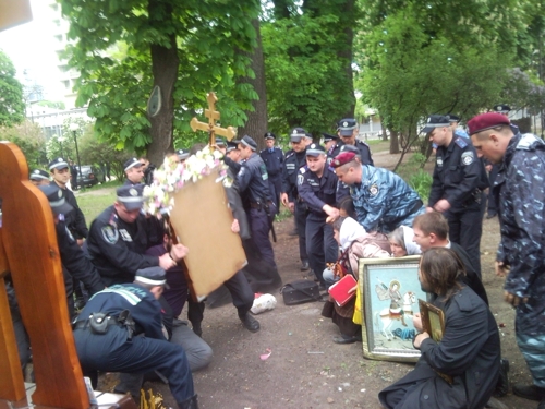 На следующее утро, 15 мая, когда православные мирно молились на месте уничтоженного храма, их окружила милиция, а затем, без предъявления каких-либо претензий о правонарушении, спецназовцы стали силой разгонять верующих, подвергая часть их них насильственному задержанию. По-садистки обошлись с Валентином Лукияником, председателем Союза православных братств Украины. Валентин Борисович уже более суток томится в заключении и предстанет перед судом. За что?! За то, что он православный?!