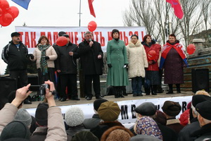 По ходу движения колонны в её ряды вливались запорожцы, понимая, что так дальше жить нельзя и только объединившись под знамёнами Наталии Витренко и её соратников можно сбросить оранжево-коричневую нечисть на свалку истории, вновь счастливо зажить в братской семье с народами России и Белоруссии.