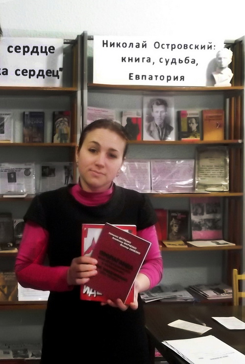 Секретарь Евпаторийской парторганизации Татьяна Косяк – в Центральной Евпаторийской библиотеке им. Пушкина.