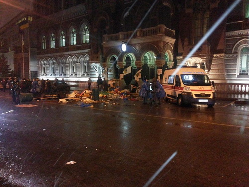По словам очевидцев, в результате столкновения с милицией есть несколько серьезно пострадавших, которых забрали кареты скорой помощи.