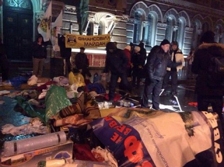 Примечательно, что, как и год назад, перед началом зачистки милицией, манифестанты, сгруппировавшись, хором исполняли гимн Украины.