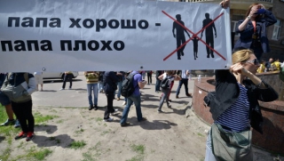 Те же, кто все-таки решился довести до сторонников "европейских ценностей" свою позицию, скорее всего, пожалели о своем решении – полиция сработала молниеносно, а нападавших тут же взяли в плотное кольцо и вывели за территорию оцепления. Кому-то повезло на порядок меньше – с полсотни особо рьяных противников марша полиция без церемоний паковала в автозаки. В эти минуты подумалось - если бы правоохранители всегда, а не только по "праздникам" действовали так же слажено, понятие "радикалы" уже давно бы вышло из обихода. Пришли к парку Шевченко и те, кто, выражая протест против ЛГБТ-ценностей, привык действовать более цивилизованными методами. Молодежь не выкрикивала лозунгов, зато плакаты в их руках были более чем красноречивыми - "Вон извращенцев из Украины!", "Украина – не Содом", "Пропаганда гомосексуализма – преступление перед обществом".