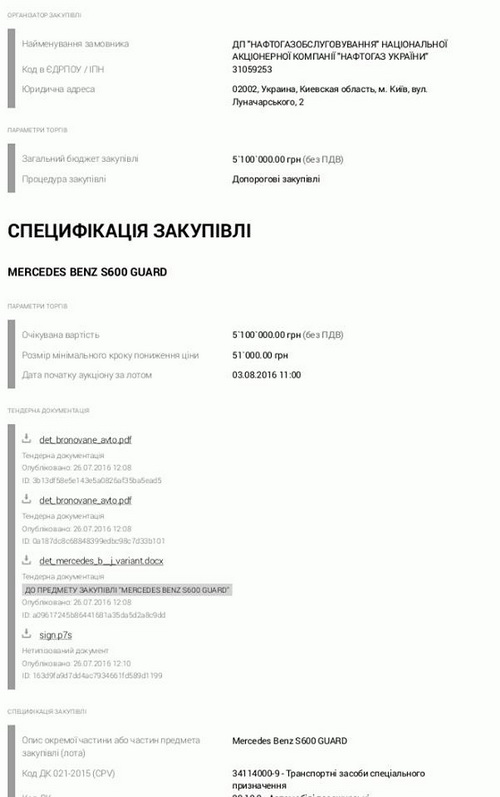Компания "Нафтогаз Украины", несмотря на кризис и дефицит бюджетных средств, объявила конкурс на закупку бронированного автомобиля "Мерседес" за 5 млн гривен (около 200 тысяч долларов США).