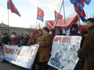 Выступающие на митинге руководитель областной организации ПСПУ Лариса Шеслер, руководитель областной женской организации "Дар жизни" Светлана Федорова, секретарь горкома ПСПУ Дмитрий Никонов высказывали твердую убежденность, что у Украины нет другого пути, как быть в союзе с Россией и Беларусью.