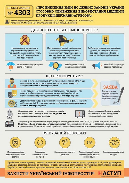 Аналогичные требования будут предъявляться для российских коллективов, планирующих гастроли на Украине, или же при выдаче разрешения на прокат фильма.