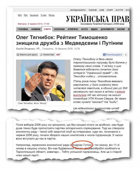 ...До сьогоднi керiвники "Свободи" наївно намагалися створити враження того, що партiю фiнансують її члени. Аби все було "прозоро", оприлюднили й прiзвище "спонсора Гутника".