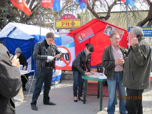 Сегодня в антиНАТОвском палаточном городке на Графской пристани в Севастополе группа молодых людей из общественной организации "Молодая гвардия" провела акцию под лозунгом "Гудбай, сексоты!" В пустую бутылку из-под coca-cola молодые люди, настроенные против НАТО, поместили портреты подписантов коалиционного соглашения: Ефремова - Партия регионов, Симоненко - КПУ, Литвина - Блок Литвина и Януковича. И с криком "Гудбай, сексоты!" бросили в море в сторону американского фрегата.