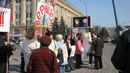 14 апреля Харьковские прогрессисты организовали пикетирование областной администрации в связи с методическим уничтожением уникального внутригородского лесного массива – Лесопарка. В последние годы городской совет, руководимый регионалами - мером – М,Добкиным и секретарем – Г.Кернес, принимает решения о выделении под коттеджную застройку лесную зону Лесопарка. За 4 года, таким образом, отдано под уничтожение более 200 гектаров дубового леса.