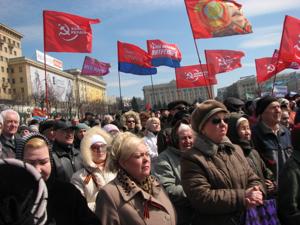 Вчера, 30.03.2014, в Харькове прошел ставший уже традиционным воскресный митинг на площади нашей Свободы. Собралось людей поменьше, чем неделю назад, но тысяч 5 было. Кроме того, в организации митинга принял участие Гражданский форум Харькова. Проведение митинга было запрещено судом, т ем не менее, он состоялся. Выступающие традиционно говорили о том, что власть в Украине захватила хунта, требовали проведения референдума о федеративном устройстве Украины.