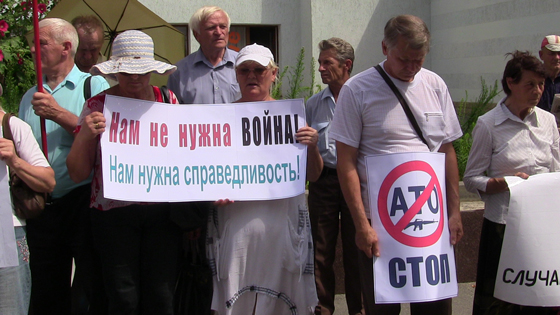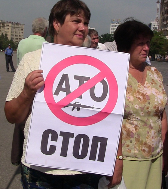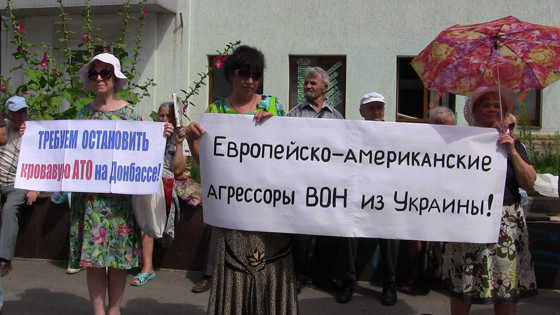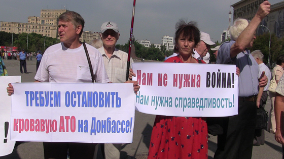 По мнению участников акции протеста то, что сейчас происходит на Донбассе, не может называться антитеррористической операцией, это больше похоже на карательную операцию по уничтожению мирного населения Юго-Востока страны.