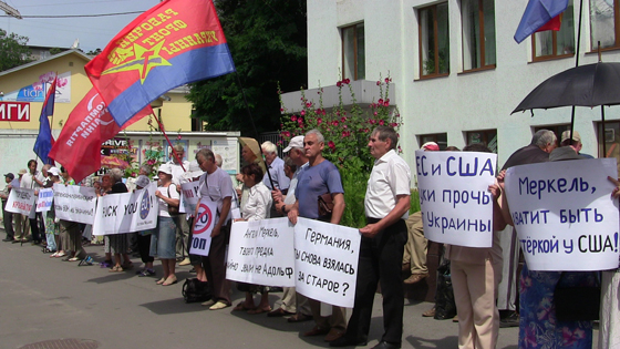 Они осудили канцлера Германии Ангелу Меркель в поддержке украинских националистов-бандеровцев и Президента Украины Петра Порошенко, которые при поддержке Евросоюза ведут уничтожение собственного народа на Юго-Востоке страны.