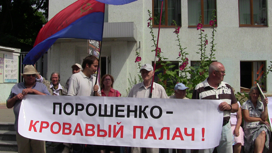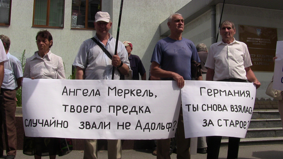 "Благодаря вмешательству Евросоюза, в том числе и Германии, в Украине был организован евромайдан, который перерос в государственный вооруженный переворот, а потом и войну на Донбассе. При вашей поддержке к власти пришел Президент Украины Петр Порошенко и украинские националисты-бандеровцы, которые на Юго-Востоке страны убивают мирное население, детей, жен, стариков. Кровь, которая сейчас льется в Украине лежит на вашей совести и руках. Мы требуем обязать своего ставленника Порошенко немедленно прекратить вести огонь и убивать мирных жителей Донбасса, а также сесть за стол переговоров. Только мирным путем можно остановить раскол в обществе и сохранить целостность Украины. Мы также требуем немедленно убрать с Украины иностранных военных консультантов, наемников из частных военных компаний США, Польши и снайперов из Эстонии" – заявил соорганизатор акции протеста Игорь Черкащенко.