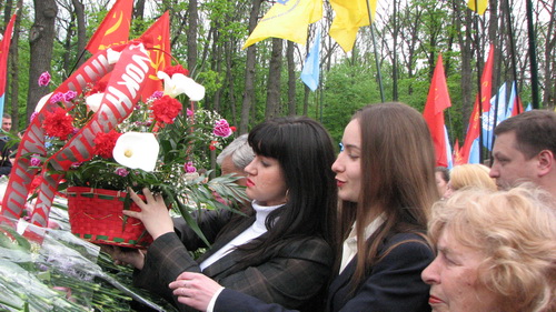 В День Победы харьковские прогрессисты вместе с членами партии "Киевская Русь" приняли участие в церемонии возложения цветов к могилам воинов, погибших при освобождении г Харькова от немецких захватчиков. Тысячи погибших покоятся в братской могиле в лесопарке под Харьковом. Ежегодно в День Победы тысячи харьковчан приходят сюда почтить память погибших. Все началось с троекратного залпа из автоматов и торжественного марша роты курсантов военного училища. Затем большая колонна участников церемонии, расцвеченная множеством различных партийных флагов, двинулась к подножью памятника, символизирующего Родину Мать. Корзины с цветами возложили и харьковские прогрессисты.