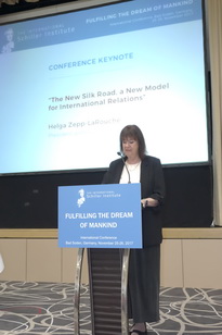 Президент и основатель Шиллеровского института Хельга Цепп-Ларуш 25 ноября 2017 года выступила с основным докладом «Новый Шелковый путь, новая модельмеждународных отношений» на международной конференции в Германии «Исполнениемечты человечества».