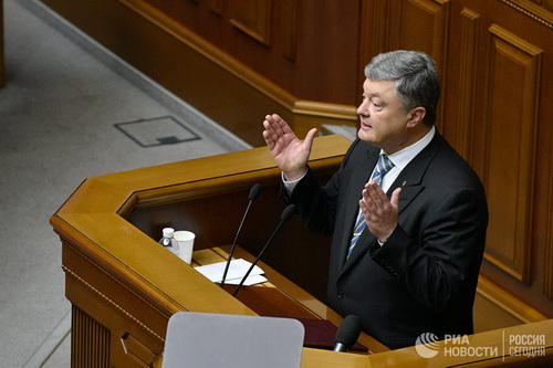 Президент Украины Петр Порошенко выступает на заседании Верховной рады Украины. 19 апреля 2018 года