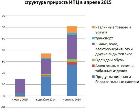 Основой скачка в апреле было повышение тарифов на газ и электроэнергию для населения. Из 14% месячной инфляции 9,3 процентных пункта или 67% общего роста пришлись на газ. При этом прирост цен на газ, который был учтен Госстатом, составил 5,5 раза.