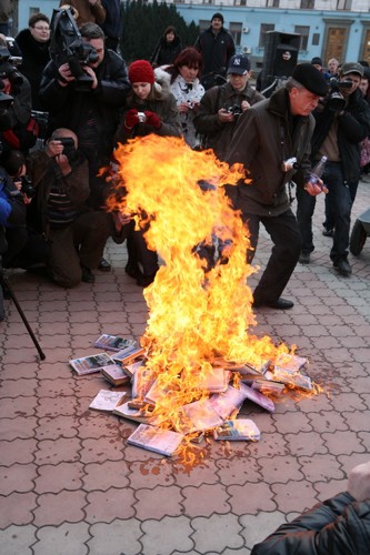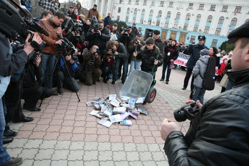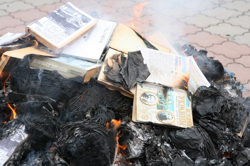 Все собранные по Крыму учебники новейшей истории Украины были торжественно сожжены во время общекрымской акции !