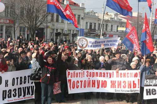 Митиг на площади Ленина открылся выступлением Наталии Витренко. Люди на площади внимательно прислушивались к каждому слову лидера ПСПУ, бурно поддерживая дружным скандированием. Так внимательно симферопольцы слушали потому, что хотели получить ответы на главный сегодня вопрос, можно ли доверять новому президенту и правительству. Оправдаются ли надежды крымчан и большей части страны, отдавших свои голоса за Виктора Януковича.
