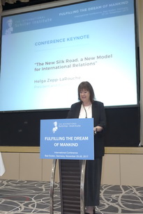 С докладом: «Новый Шелковый путь, новая модель международных отношений» на ней выступила призидент и основатель Шиллеровского института Хельга Цепп-Ларуш.
