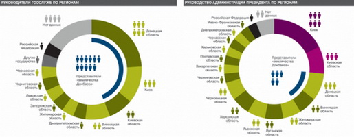 Почти в половине министерств украинского правительства большинство руководящих должностей принадлежат выходцам из . Аналогичная ситуация наблюдается в Генпрокуратуре, СБУ, судах и на уровне областных властей. Об этом свидетельствует исследование, проведенное .