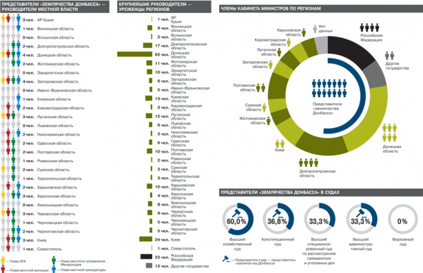 Общеизвестно, что к донбасскому землячеству в Украине относятся: президент, премьер-министр, два вице-премьера, глава парламента, секретарь Совета нацбезопасности, глава Нацбанка, генпрокурор и главы четырех самых значимых судов, включая Конституционный.