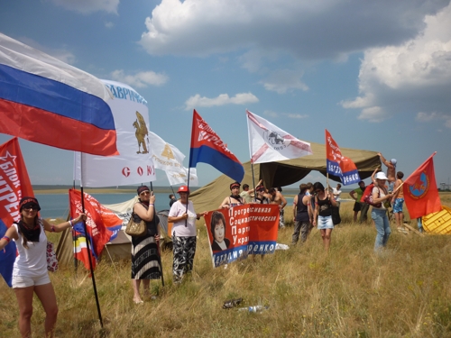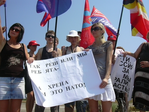 С утра на пляжных берегах курортных городов Крыма уже развевались российские триколоры и антиНАТОвские воззвания. Организаторами акции выступили как политические силы: прогрессивные социалисты, Молодежная организация "Прорыв", Партия "Киевская Русь", так и общественные организации "Российская община Евпатории", "Российская община Керчи" и женские организации "Дар жизни" и "Собор православных женщин Украины".