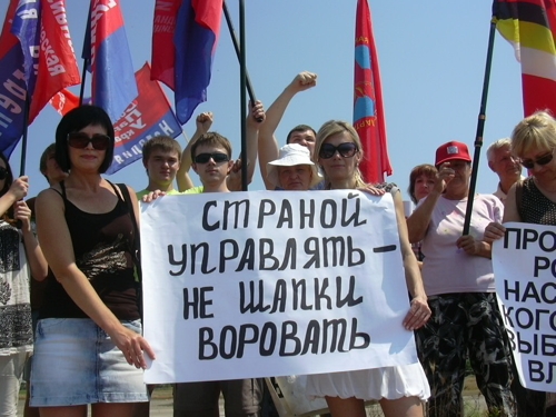 "Такой подарок преподнесли Российской Федерации в День Святой Троицы и Дня России "как бы славяне" Янукович, Азаров, Симоненко, Литвин и другие представители украинской власти, которые цинично позиционируют себя лично как православные христиане, - отмечали митингующие. - За это, и, возможно, за потерю боеспособности страны, должны выразить им "благодарность" президент и премьер-министр РФ Анатолий Медведев и Владимир Путин.".