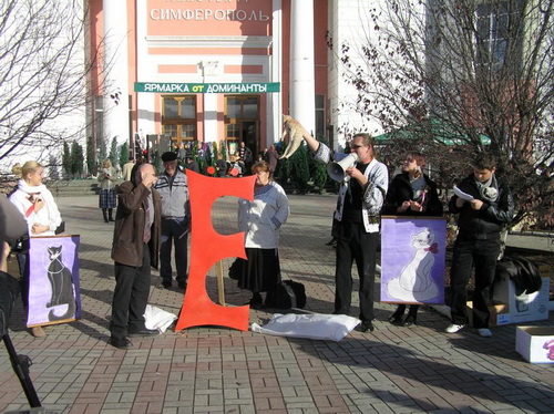 Для представителей всех политических сил полуострова участники акции приготовили в подарок живых котят, рассчитывая на то, что имея в своем доме маленькое и нежное существо, у политтехнологов не повернется язык использовать ложь и клевету против своих политических оппонентов.