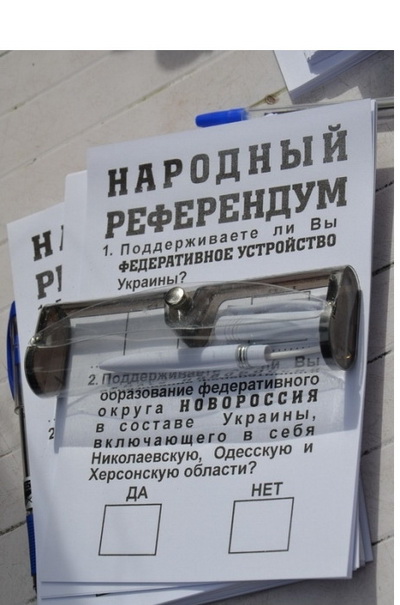 Ни о каком выходе из состава Украины речь не шла, но поэтому приписать активистам сепаратистские лозунги, что они хотят отделения и присоединении к России ,речи не было, как это перекручивает нынешняя власть. Люди хотят мира и развития своих областей, ведь разве они это не доказали ,за время независимой Украины, когда большая часть бюджета государства пополнялась из областей Юго- Востока ,когда за время беспорядков в Киеве, они продолжали упорно работать ,а не стоять на Майданах?