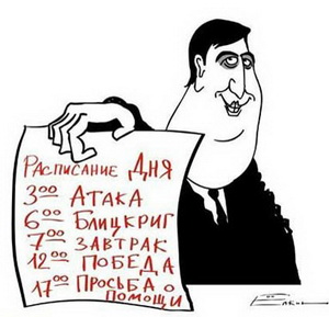 Однако "Пятидневная война" 2008 г. закончилась с тем же результатом, что и "Летняя война" 2004 г., а именно полным разгромом грузинской армии, которой никак не помогли "военные училища и академии западных стран", после чего М. Саакашвили пришлось то с перекошенным от ужаса лицом убегать от причудившихся ему российских боевых самолетов, то в состоянии нервного стресса жевать свой галстук перед объективами западных телекамер.