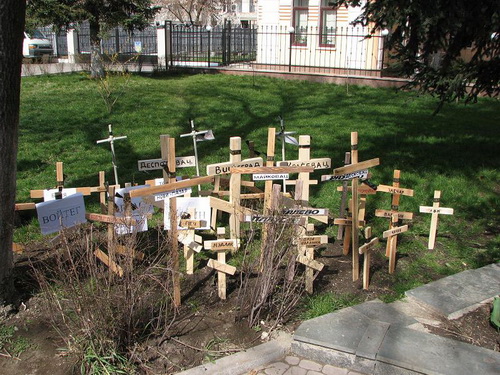Крымская молодёжь в этот день устроила постоянному представителю президента Украины в Крыму соответствующий вид из окна. Теперь его окно выходит с видом на кладбище. Всю лужайку у представительства президента ребята из "Прорыва" застолбили могильными крестами, подписанными названиями разбомблённых городов Югославии.