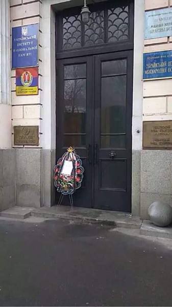В Киеве под дверью Института национальной памяти неизвестные оставили похоронный венок.