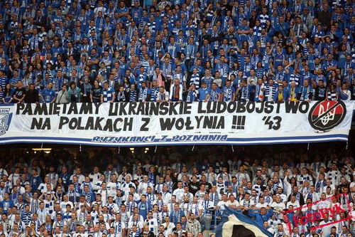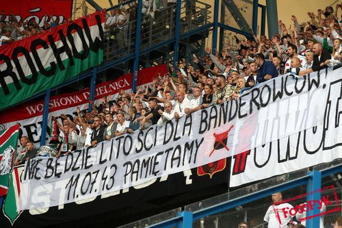 На стадионе "Kolejorz" болельщики обеих команд вспомнили 72-ую годовщину геноцида поляков на Волыни бандеровскими отрядами ОУН. Обе трибуны развернули плакаты, на одном из которых был зачёркнут красно-чёрный флаг и государственный герб тризуб, а написано: "Помним украинский геноцид поляков на Волыни", а на другом "К бандеровцам милости не будет. 11.07.1943 – Помним!". Игра закончилась победой "Леха" (3:1).