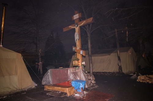 На трех входах в лагерь дежурят по 5-6 митингующих. «Стражи» городка узнают у каждого, кто пытается войти, с какой целью пришел, нет ли с собой подозрительных предметов. Те, кто на вахте, активно переговариваются между собой по рации, только после проверки пропускают внутрь.