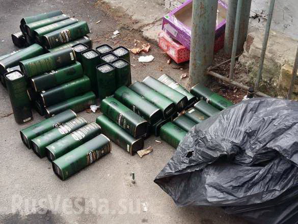 «Склад пустых коробок из-под виски Bushmills Malt десятилетней выдержки возле мусорного контейнера под зданием Генпрокуратуры на улице Петлюры.