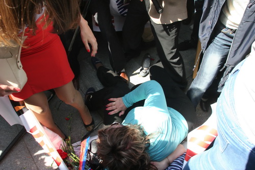 У журналистов ПСПУ разбили кинокамеру и фотоаппарат. Милиция преступно созерцала побоище издали, ничего не предпринимая в обуздание нацистов.