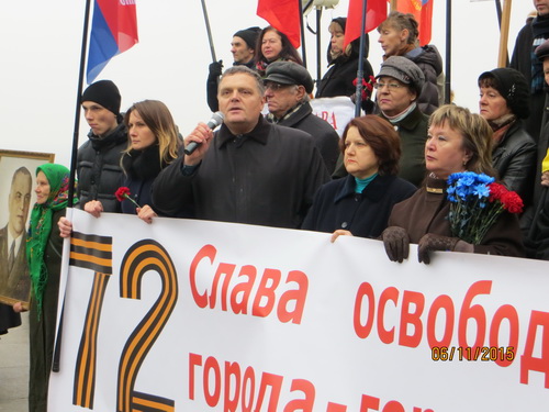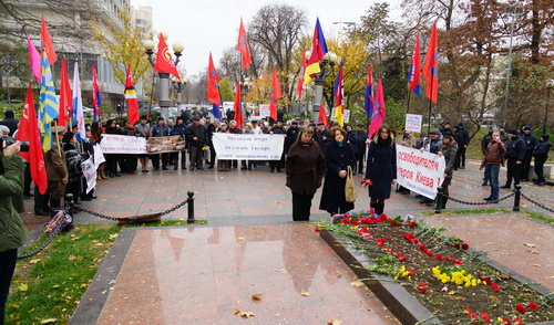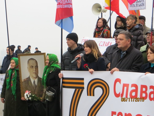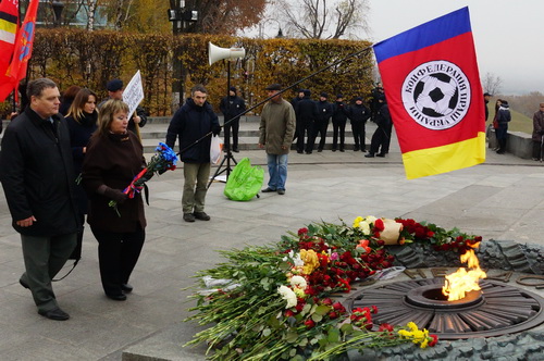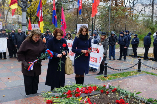 У Вечного огня состоялся митинг «Левой оппозиции», на котором выступили: сопредседатель данного объединения левых сил, Председатель Прогрессивной социалистической партии Украины, народный депутат Украины Наталия Витренко; член Координационного совета «Левой оппозиции, председатель «Союза православных братств» Валентин Лукияник; член Координационного совета «Левой оппозиции», руководитель ВОО «За союз Украины, Белоруссии, России (ЗУБР)», народный депутат Украины Елена Мазур; член Координационного совета «Левой оппозиции», член ЦК КПУ, народный депутат Украины Владимир Яценко, член Координационного совета «Левой оппозиции», зам. председателя Рабочей партии Украины Виталина Буткалюк, член Координационного совета «Левой оппозиции», председатель Всеукраинской профсоюзной организации «Конфедерация труда Украины», народный депутат Украины Владимир Марченко.