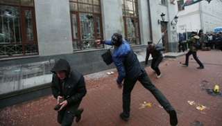 Сегодня радикалы забросали здание Россотрудничества камнями и яйцами, облили краской, разбили окна. Возле здания дежурили полицейские, но они не препятствовали погрому.