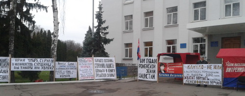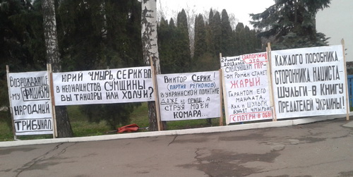 Эта акция у нас бессрочная. С этими плакатами ("Возрождающемуся фашизму - народный трибунал", "Остановим фашизм – защитим подвиг наших отцов", "Ни пяди Роменской земли нацистам"), мы и в дальнейшем будем пикетировать сельский совет в селе Вовковцы, районный совет и правящую Партию регионов, высказывать своё презрение, гнев губернатору области Чмырю Ю.П, главе райадминистрации Серику В.П. при попустительстве которых сегодня это происходит.