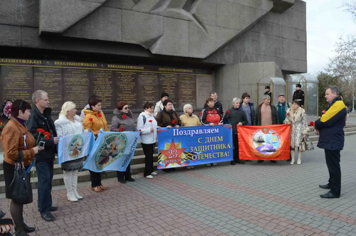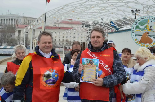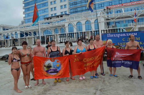 23 февраля клубы зимнего плавания "Морж СССР" и "Буревестник" отметили День защитника Отечества. На 23 февраля было запланировано проведение II Международного слета любителей зимнего плавания, но, в связи с объявлением 22 и 23 февраля на Украине днями траура, все мероприятия отменены. Утром 23 февраля севастопольские "моржи" пришли к Мемориалу героической обороны Севастополя 1941-1942гг. и возложили к Вечному огню у подножия Мемориала цветы. Затем колонна севастопольских любителей здорового образа жизни и закаливания проследовала на пляж "Хрустальный". Здесь к ним присоединились "моржи" из Днепропетровской Федерации зимнего плавания "Белый медведь", гости из Запорожья и севастопольский клуб зимнего плавания Корабельной стороны. Под развевающимися флагами СССР, города-героя Севастополя, флага ВМФ и Украинской ССР капитаны севастопольских клубов "Морж СССР" и "Буревестник" Алексей Меркулов и Виктор Пискунов поздравили собравшихся с Днем защитника Отечества и пожелали всем мира и стабильности. Организаторы поблагодарили за помощь и постоянную поддержку депутатов Севастопольского городского Совета Евгения Дубовика и Андрея Луненка, директора детской юношеской спортивной школы "Чайка" Александра Огиенко и Отдел по делам молодежи и спорта Ленинской районной государственной администрации. С поздравительным словом и со словами благодарности за пропаганду здорового образа жизни и пример для молодежи выступили депутаты Севастопольского городского Совета Евгений Дубовик и Андрей Луненок. Затем в "моржи" были приняты новички. Клубы "Буревестник" и "Морж СССР" пополнились новыми смельчаками. После небольшой спортивной разминки все желающие приступили к водным процедурам. Температура черноморской воды в районе пляжа "Хрустальный" составила 9 градусов. Активисты клубов зимнего плавания- члены ПСПУ и Союзного движения, выйдя из воды, развернули на берегу свои флаги. В то время, как проходило массовое купание, два севастопольских "моржа" -экстремала Виктор Пискунов и Олег Сырица совершили заплыв на противоположную сторону Севастопольской бухты к Константиновскому равелину и обратно. Через 42 минуты после старта все любители зимнего плавания встречали отчаянных смельчаков на берегу. За выносливость и смелость севастопольским экстремалам Виктору Пискунову и Олегу Сырице были вручены медали. Организаторы мероприятия выражают благодарность всем, кто оказывал помощь в подготовке II Международного слета любителей зимнего плавания. Запланированный Слет обязательно состоится позже, о чем будет объявлено, и на героической севастопольской земле встретятся "моржи" из разных уголков земли.