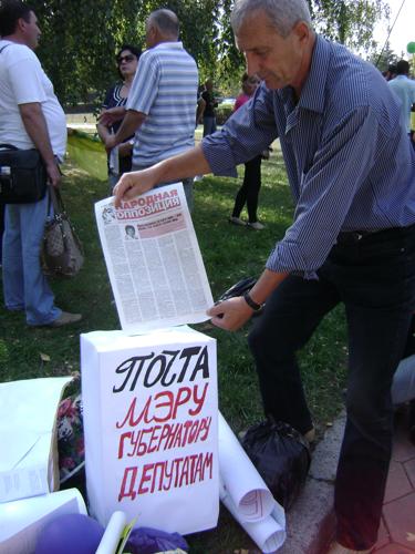 Витренковцы держали плакат "Хозяев рынка "Черемушки" на нары!". В ходе акции активисты ПСПУ раздавали свежий номер газеты "Народная оппозиция" , досталось и губернатору- ему Виктор Марышев отправил наш "боевой листок" в почтовый ящик , который специально соорудили протестующие.