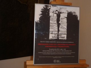 А из Конференц-зала можно было пройти в соседнее помещение, где была представлена выставка, рассказывающая о геноциде, совершённом ОУН и УПА на мирном польском населении.