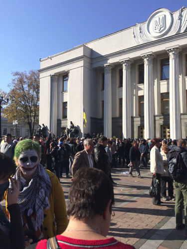 И по свежим следам: "свободовцы" построились в колонну и пошли маршем в направлении Лавры. Под Радой остались "братчики" Корчинского, "куновцы", челы в балаклавах, представители батальона "Азов", вообще не понятно какие люди явно маргинально-агрессивного вида. Они и пытались прорваться к парламенту. Сейчас никакой особой движухи нет. Подтянулись "ляшковцы",которые жмутся плотной группкой в сторонке. Поют песни про Бандеру. В общем, "культурно" проводят время. Все загажено.