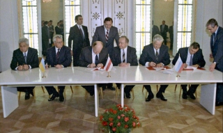 Спустя 25 лет после подписания «беловежских соглашений» Кравчук, Шушкевич и Бурбулис находят всё новые оправдания тому, в чём они приняли тогда самое деятельное участие. Не стала в этом смысле исключением и встреча в штаб-квартире Атлантического совета (Atlantic Council) в Вашингтоне, открывшая американское турне беловежских подписантов.