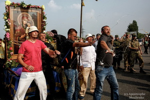 Крестный ход в Борисполе с криками националистов и метанием яиц