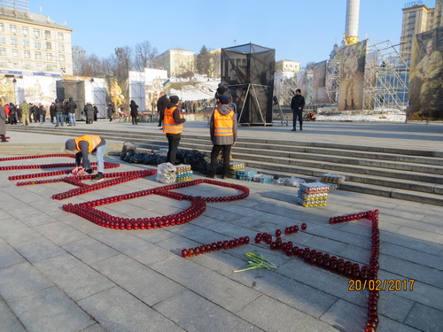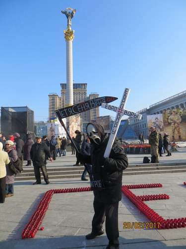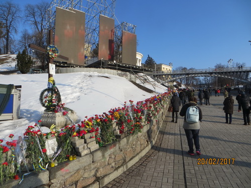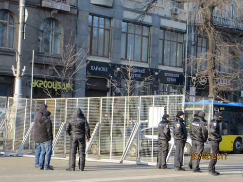 В эту годовщину я решил пройтись по Крещатику и сравнить «европейскую», нынешнюю демократию, с демократией «преступного режима». Свидетельствую, разница колоссальна. Вместо палаток, печек и толп народа – пустота. Вместо свободного доступа – Крещатик огорожен металлическими сетками, входы охраняются полицией и военными с собаками. На входах полиция осуществляет выборочную проверку, точнее обыск. При этом все это без законных ограничений. На Крещатике практически пусто. Кучками ходят и пьют кофе группы людей в камуфляжной форме. Выложили цветы в память о погибших. Возле мерии маленюсенький митинг-протест. И всё это в пространстве огороженном металлическими сетками. Ни дать, ни взять - еврообезьянник под охраной с собаками. Что дальше???