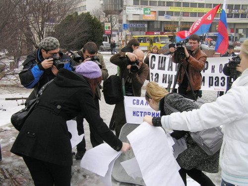 Медленно, получая удовольствие от процесса, люди рвали в клочья президентские указы и скандировали "Фашизм не пройдет!"
