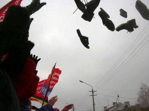 В рамках акции участники протеста закидали местную власть ботинками. Инициаторов протестной акции с удовольствием поддержали и жители городов. Для каждого, примкнувшего к акции крымчанина, не было большего удовольствия, чем кинуть во власть ботинком.